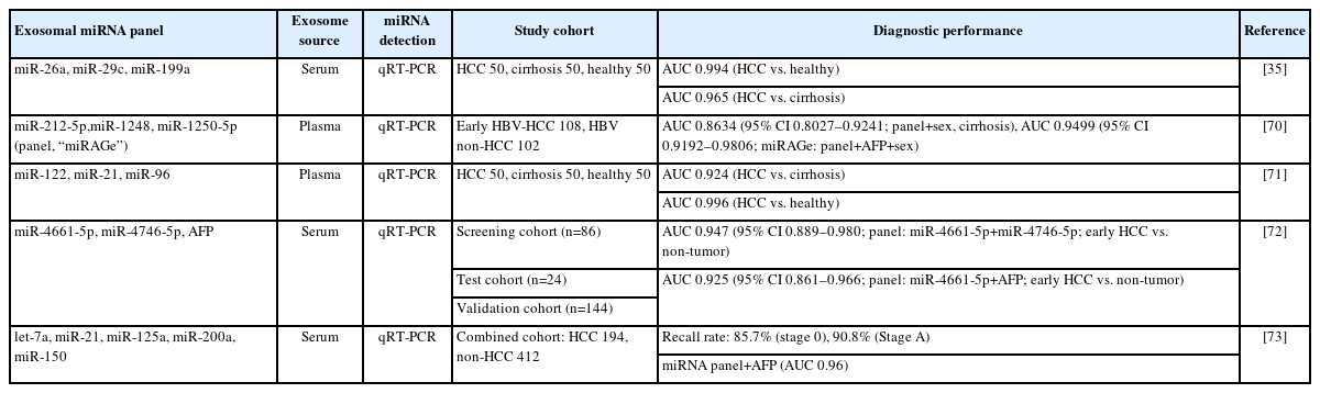 - 72. Cho HJ, Baek GO, Seo CW, et al. Exosomal microRNA-4661-5p-based serum panel as a potential diagnostic biomarker for early-stage hepatocellular carcinoma. Cancer Med 2020;9:5459-5472.